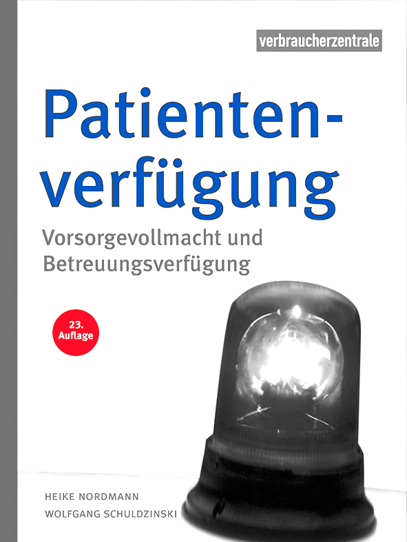 Titelbild des Ratgebers PatientenverfügungWer gesund ist, kann sich nur schwer vorstellen, nicht mehr selbst über das eigene Leben entscheiden zu können. Doch nicht nur altersbedingt, sondern auch durch einen Unfall oder eine Erkrankung kann dies plötzlich passieren. Dann müssen Angehörige, Ärzte oder Gerichte wichtige Entscheidungen zum Beispiel über medizinische Behandlungen, finanzielle Angelegenheiten oder die Wohnsituation treffen. Doch das muss nicht so kommen: Wenn schon in gesunden Tagen mit rechtssicheren Vollmachten vorgesorgt wird, lässt das im Fall der Fälle keinen Raum für Mutmaßungen, was die oder der Betroffene dann entschieden hätte. Der aktualisierte Ratgeber „Patientenverfügung. Vorsorgevollmacht und Betreuungsverfügung“ der Verbraucherzentrale – inzwischen in 23. Auflage erschienen – zeigt ganz praktisch, wie „Vorsorge im Paket“ aussehen kann.